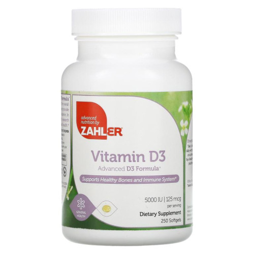 Advanced Nutrition by ZahlerSupports Healthy Bones and Immune SystemGeneral HealthDietary Supplement250 mcg Per ServingFeel Better, EverydayKosher PareveNon-GMOGluten FreeSoy FreeDairy FreeVegetarian FriendlyAdvanced D3 FormulaVitamin D3 is a crucial..